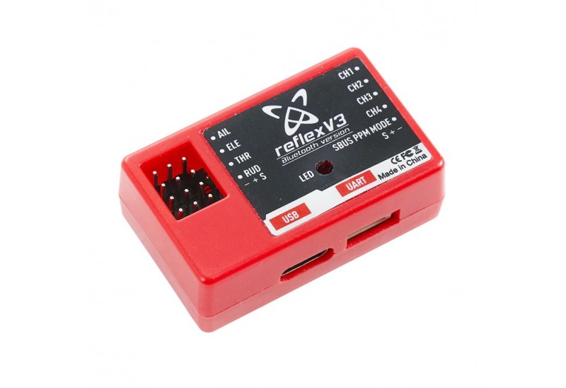 Le Reflex V3 utilise des gyroscopes 3 axes et des accéléromètres 3 axes afin d'aider à stabiliser un modèle volant à voilure fixe (Avion) face aux turbulences, sautes de vent, etc. Il se branche entre le récepteur et les servos d'ailerons, de profondeur, ...