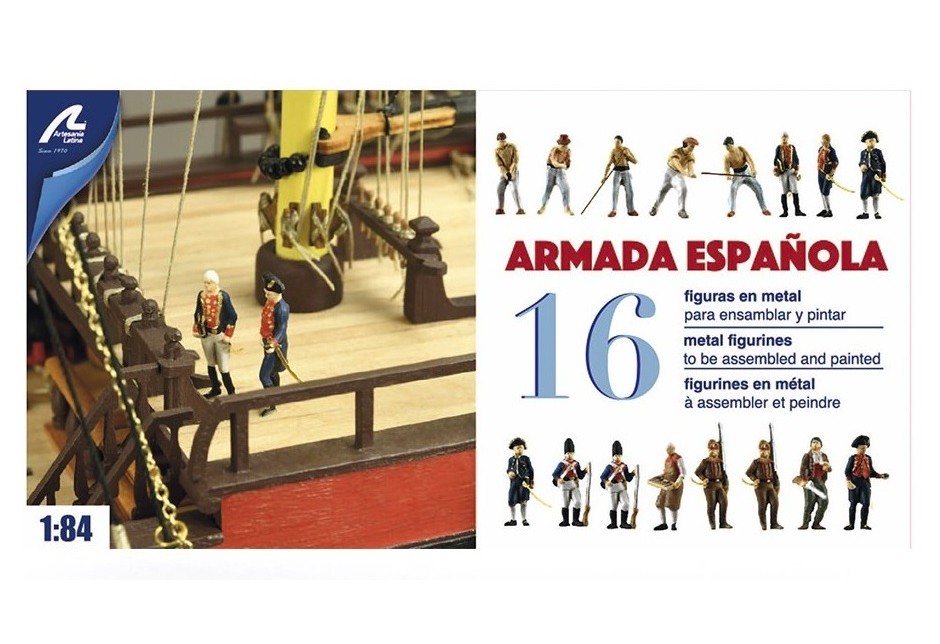 Pour donner encore plus de réalisme à la maquettes en bois du navires de la Marine Espagnole -Armada Española-, ne manquez pas l'ensemble de 16 figurines en métal à l'échelle 1/84 des membres de l'équipage, prêt à être assemblé et peint. Dimensions des fi...