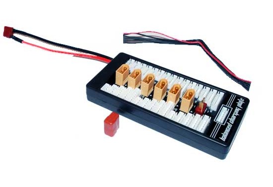 Platine Charge Multi XT60 en parallèle. Permet de charger jusqu'à 6 batteries munies de prises XT60 en même temps...