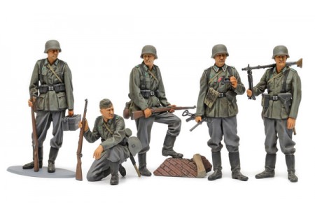 Ces figurines reproduisent des fantassins de la Wehrmacht en 1941-42 au moment où les forces allemandes menaient de durs combats, en particulier sur le Front Est.