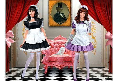 2 figurines en plastique. Sujet "particulier" - MASTER BOX présente deux figurines de jeunes femmes, serveuses dans des cafés de la banlieue de Tokyo (Akihabara) ou des Messieurs vont jouer les maitres de maison dans l’atmosphère feutrée des riches demeur...
