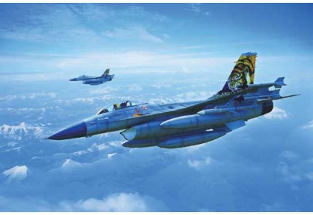 Modèle de réplique du F-16 D, un avion d'entraînement de combat à deux places. L'armée de l'air turque a montré une livrée très réussie lors du TigerMeet en 2014.