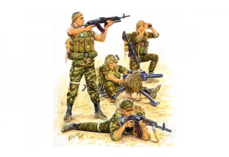 L'ensemble comprend 4 figurines non assemblées et non peintes, une arme, des munitions et de l'équipement...