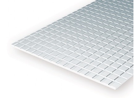 Plaque de polystyrène blanc quadrillée, rainures profondes. Dimensions de la plaque : 152 x 304mm. Epaisseur : 1,01mm. Dimensions des carrés : 2,11 x 2,11mm. Ecartement entre les carrés : 0,42mm. ...