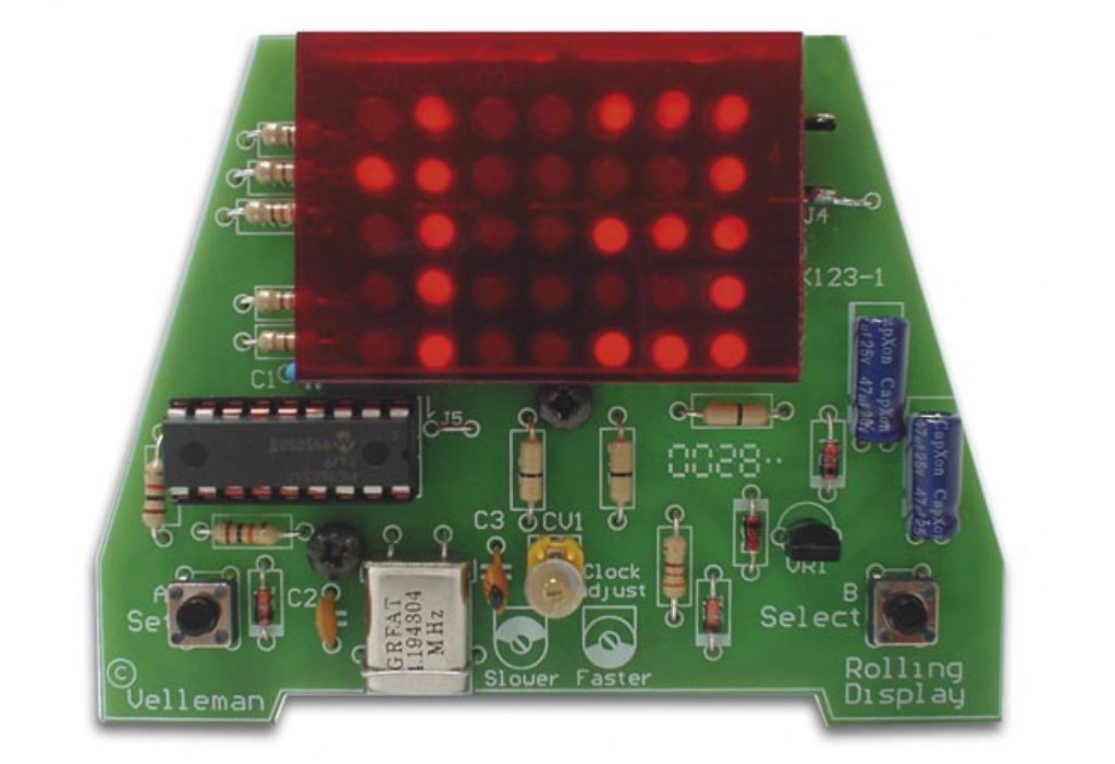 Horloge à affichage déroulant heure & date - 35 LED - WHADDA