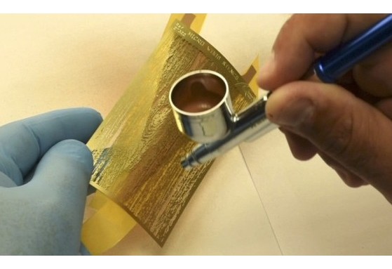 Permet de reproduire fidèlement le veinage du bois grâce à un aérographe et ce pochoir en photo-découpe.
