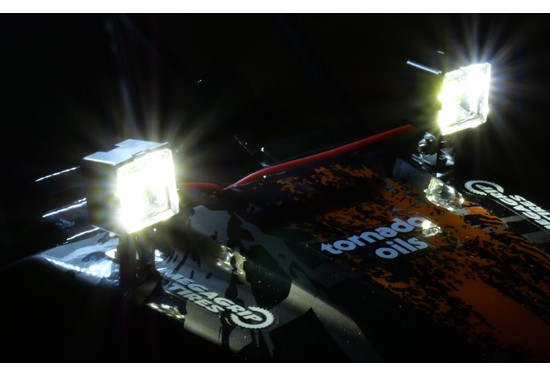 2 LEDs white Ø 5.0mm - front√ 2 LEDs red Ø 3.0mm - rear√ Plug system: JR√ Voltage: 4.8V – 6.0V√ Perfect for 1/10 models√ 4 aluminum holder√ Wire length: 290mm...