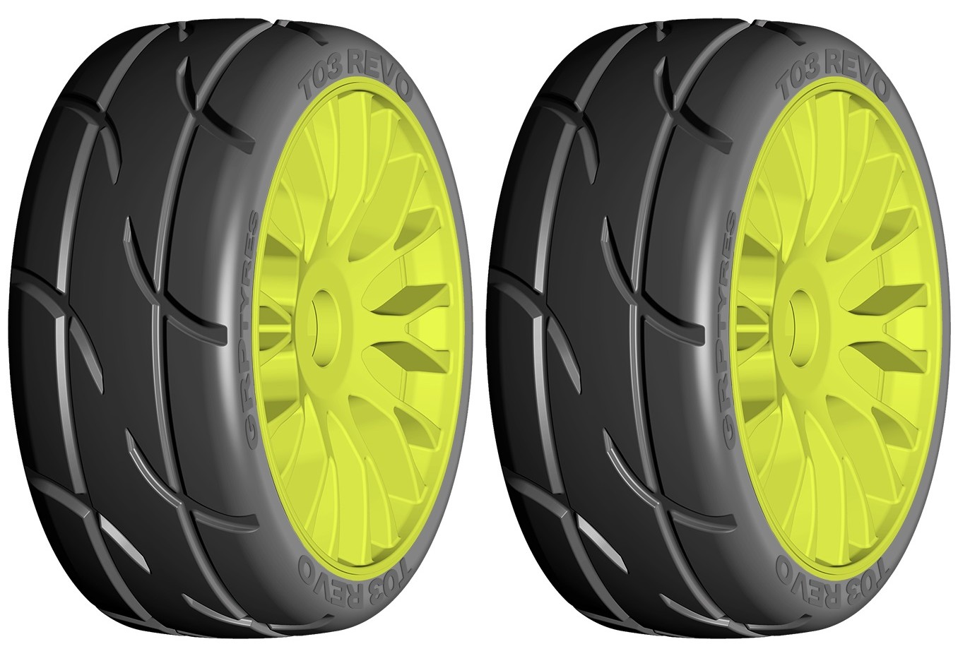 Paire de roues avant ou arrière pré collés RS Racing Rally Slick 1/8 de Team C.