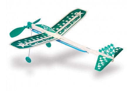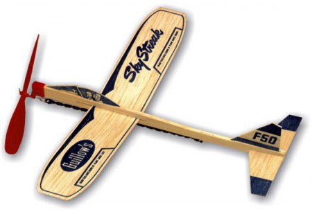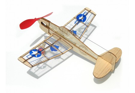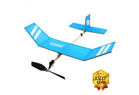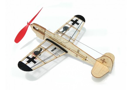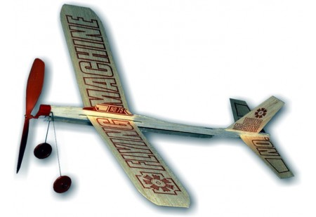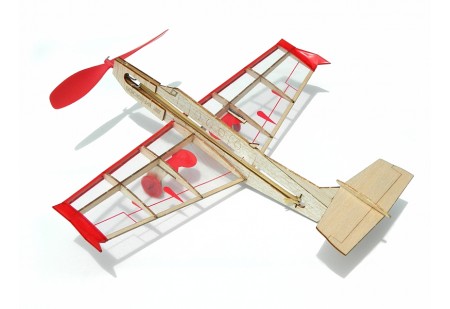 Le Bambino est un planeur à voile avec un moteur à caoutchouc. Le kit est fabriqué en bois de balsa.