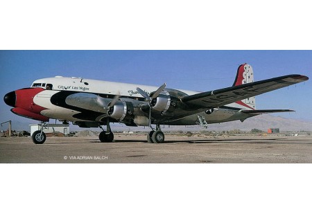 Modèle à assembler du C-54 Skymaster dans la livrée des Thunderbirds. Les légendaires Thunderbirds forment l'équipe acrobatique de l'USAF. Pour le transport du personnel au sol...