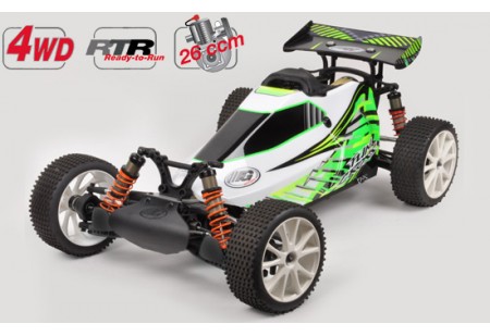 Buggy 1/6ème 2WD à 4 roues indépendantes, double triangulation, châssis 4mm, amortisseurs hydrauliques à volume constant.