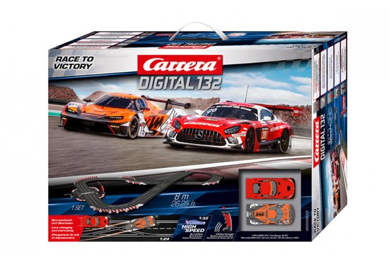 « Race to Victory » est la devise du nouvel ensemble Carrera DIGITAL 132. Sur la ligne de départ du circuit de 8 mètres de long se trouve la toute nouvelle KTM X-BOW GT2 « True Racing, No.16 » en livrée orange, qui se distin...