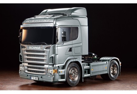 Edition spéciale du tracteur RC Scania R370 (56318) avec pièces de cabine pré-peintes en Aluminium brillant TS-17 puis recouvertes de vernis polyuréthane pour obtenir un brillant profond et durable.