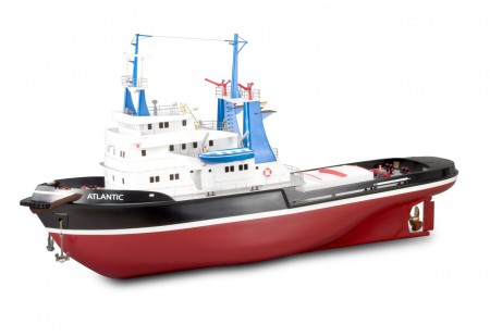 Découvrez l'Atlantic, un modèle en bois et plastique d'un remorqueur dont le design et les pièces sont fabriqués en Espagne, et dont la coque en ABS de haute qualité est fabriquée en France. C'est une réplique fidèle des remorqueurs des années 70 et 80.