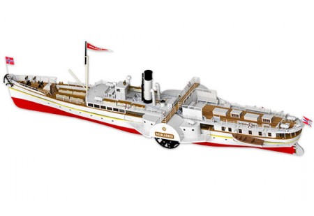 Très belle maquette en bois entièrement à assembler d'un bateau à vapeur à roues à aubes