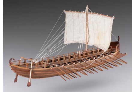 Le modèle représente une birème grecque du 6ème siècle avant J-C. L’équipage était composé de 50 rameurs assis sur deux rangées superposées (25 de chaque côté) et environ 10 soldats supplémentaires. Lors des combats, les rameurs abandonnaient les rames et...